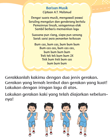 kombinasi gerak dasar manipulatif sesuai dengan konsep tubuh, ruang,usaha, dan keterhubungan dalam berbagai bentuk permainan sederhana dan atau tradisional. Materi ini sesuai dengan buku siswa tema 3 halaman