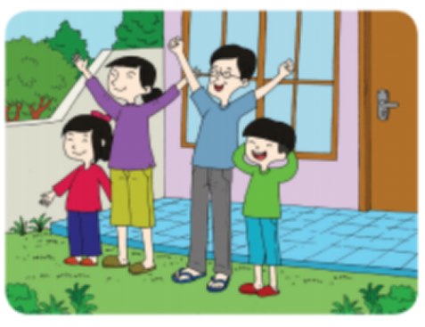 Gambar 5. keluarga Lani sedang menghirup udara di taman depan rumahnya.
