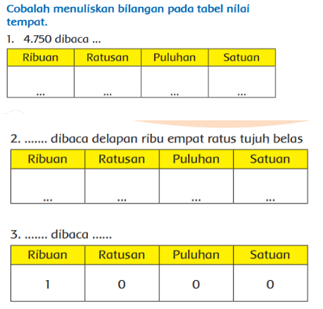 Agar lebih mudah membaca bilangan, kamu juga dapat menggunakan aturan nilai tempat. Contohnya 1.250