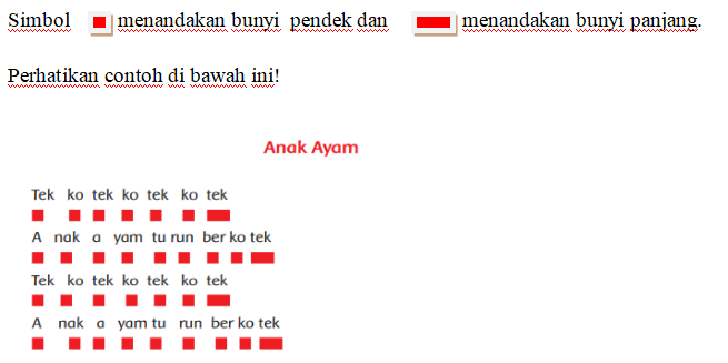 Nah, sekarang buatlah pola panjang dan pendek bunyi lagu “Anak Ayam” bait keduaseperti contoh diatas.
